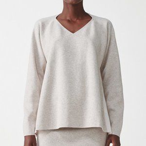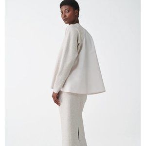 Beautiful COS top that's been super comfortable to wear. Has very special detailing as seen in the photos, with its two materials. Knitted part: 95% Cotton, 5% Yak / Woven part: 100% Cotton / Machine washable