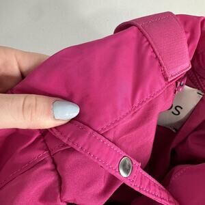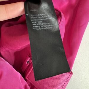 Vibrant pink color; quilted/padded outer shell for a soft, puffy look