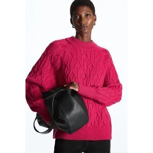 COS Pink Cable Knit Relaxed Oversized Wool Blend Chunky Sweater Size XS