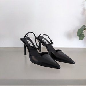 Originally $250, these stunning pumps are shiny contemporary and pointy! https://www.cos.com/en-au/women/accessories/shoes/product.pointed-heeled-pumps-black.1034019001 Size 38. Brand new never worn (I took them out of the packaging but they are too high for me)