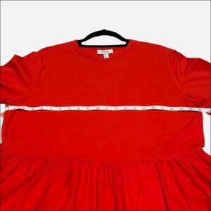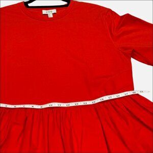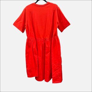 COS Red Contrast-Panel Asymmetric T-Shirt Dress (Size L)