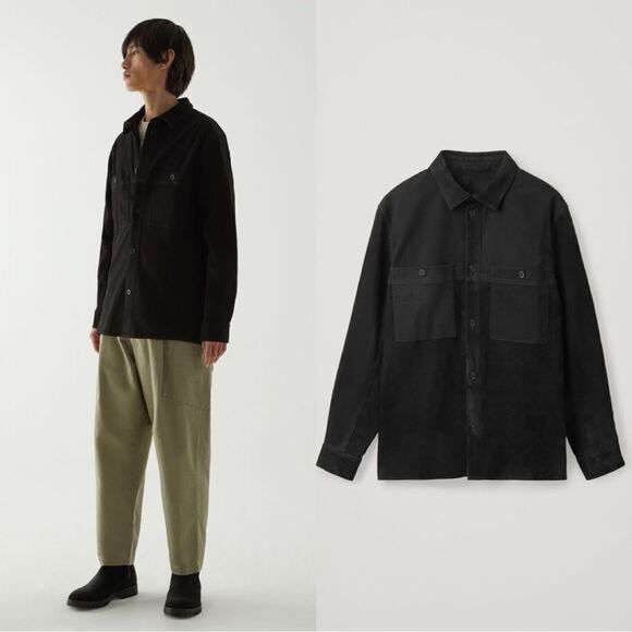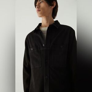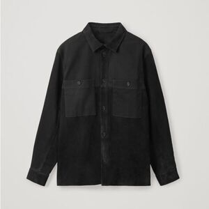COS Relaxed Suede-Cotton Overshirt in black