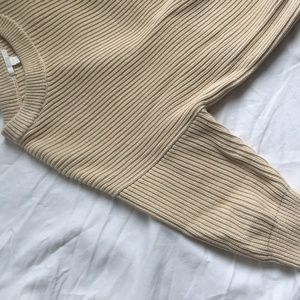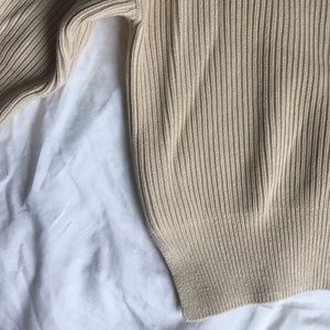 COS ribbed cream sweater with 3/4 arms and slit on the side. Looser fitting, beautiful sweater, hardly worn. Size XS. Purchased at COS store in Paris.