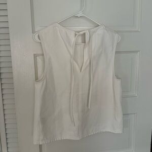 A minimal take on denim codes, this top has a clean sleeveless shape, tonal paneling and delicate ties that lace into a bow at the back. It's made from organic cotton with TENCEL™ Lyocell for lightness and offered in a muted chalk hue.