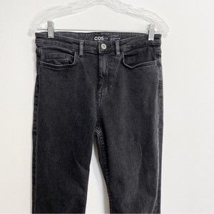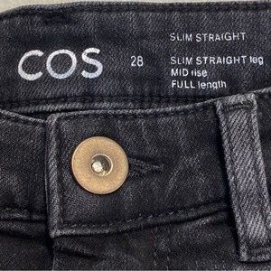 COS slim straight leg full length black jeans in excellent condition. Five pockets with button and zip closure. Mid rise.