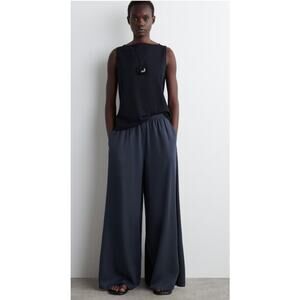 he womenswear team renders our signature pants in flowy silhouettes for the balmy weather. Made from a drapey cupro blend, these palazzo pants are cut in a relaxed shape with wide, full-length legs. Adjustable drawstrings are hidden inside the elasticated waistband.