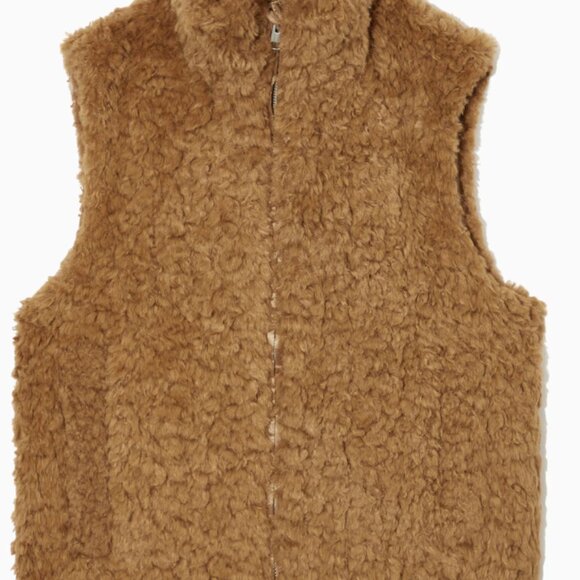 Wrap up warm with this soft, faux-shearling gilet crafted from recycled polyester. It is complete with a stand collar, front zip-closure and welt pockets.