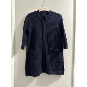 An A-line shape, this long cardigan is made from a stretchy jacquard knit with an embossed texture. Designed to be worn as an extra layer or light jacket, it has ¾ sleeves and a hidden zip front.