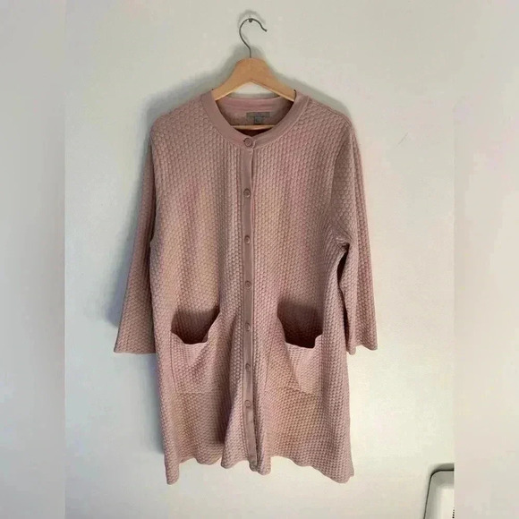 COS Textured dot flowy button down knit crew neck mini/midi sweater dress L