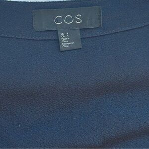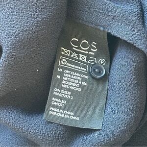 COS V-Neck Long Sleeve Buttondown Midi Shirt Dress Dark Navy Women’s Sz 4