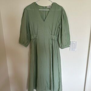 COS Voluminous V-Neck Light Green Midi Dress Size 6 – Lightweight Feminine