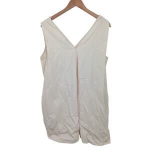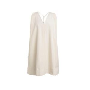 This COS women’s tunic dress is crafted in a minimalist, modern design with a sleeveless cut and deep V-neckline. The light cream color pairs effortlessly with layered or standalone looks. Features two hip pockets for functionality and a relaxed drape style. Made in Turkey with a 100% cotton lining. Size US 2 (see measurements below).