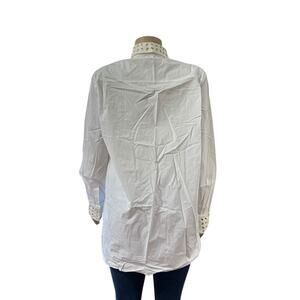 COS Women Button Up Shirt Size 10 Classic Minimalist White Timeless Macrame Work