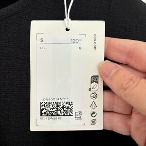 COS Women long sleeve crew neck little black dress with shoulder pads medium NWT