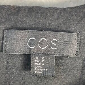 COS Womens 12 Black Tie Front Maxi Dress Short Sleeve Minimalist Lagenlook