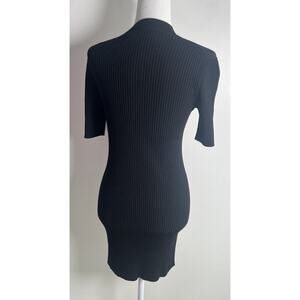 COS Womens Large Black Stretch Knit Ribbed Mock Neck Short Sleeve Mini Dress EUC
