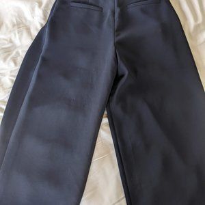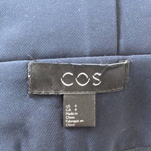 COS Paper Bag Waist High Waist Belted Pants Wide Leg Navy Blue size 4. Paper bag waist. High waist, super high rise. Pleated. Belted removable sash tie belt. Hidden zip closure with double hook closure at the waistband.