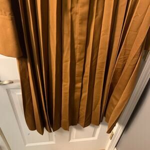 It's a brown, pleated shirt dress, with buttons down the front.