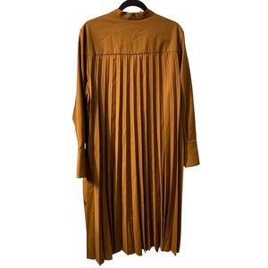 COS Women's Pleated Minimalist Midi Dress Size 12 Brown Office Wool Lagenlook