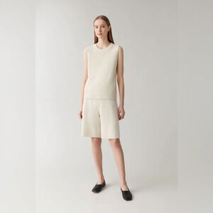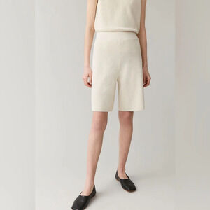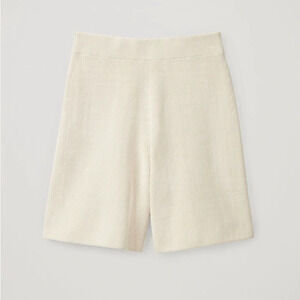 COS Women’s Ribbed-Knit Bermuda Shorts in Ivory Size M