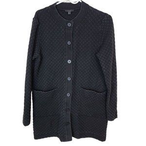 COS Womens S Black Textured Knit Longline Button Front Cardigan Sweater Pockets