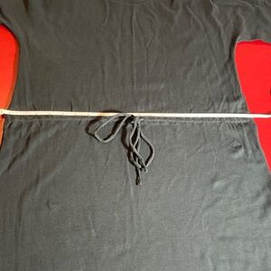 Soft cotton mini dress with a cinched drawstring waist and relaxed silhouette.