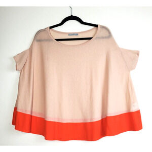 COS Womens Xs Top Minimalist Colorblock Neutral Art 100% Cotton Dolman Oversized with narrow sleeve, lightweight knit, beige neutral and orange