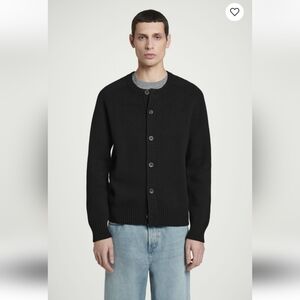 COS Wool & Cotton Blend Crewneck Cardigan Black Sz XL Unisex