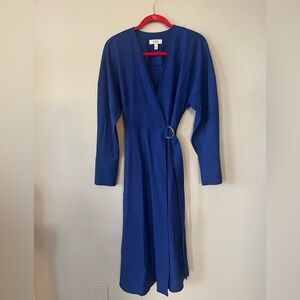 COS Wool Crepe Wrap in Cobalt Blue Midi Dress Women's Size 6