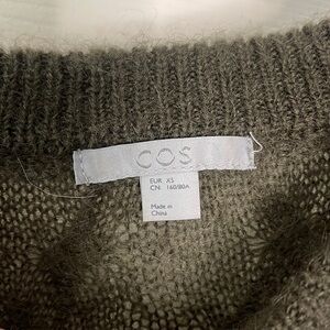 COS Wool Short Sleeve Olive Green Grandmacore Sweater Size XS