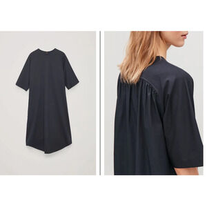 COS Woven-Panelled A-Line Jersey Dress Midi Deep Blue sz XS