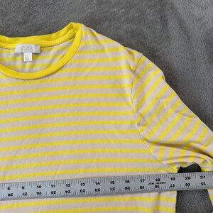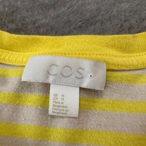 No holes or stains, some normal wash wear. Men's size medium COS yellow striped tee.