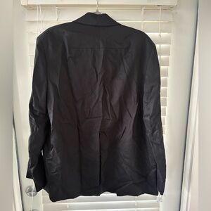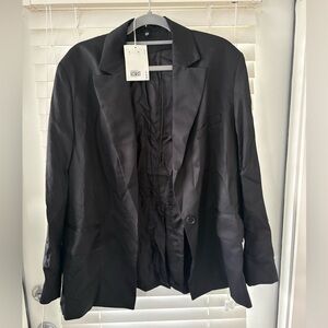 Timeless black blazer with a single-button closure. Tailored fit for a polished look.