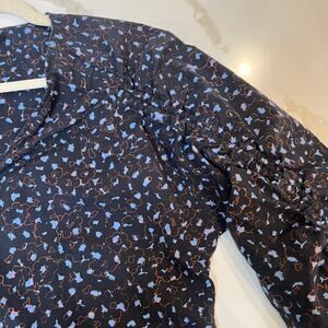 COS drawstring sleeve V neck cotton blouse navy Sz 6