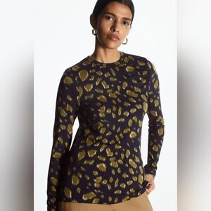Crafted from soft TENCEL™ Modal with a touch of stretch, this fitted long-sleeved top has a classic round neck and is elegantly gathered at the left armhole for a subtle point of difference. It's printed with an abstract leopard motif.