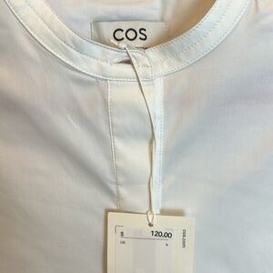 COS white grandad long sleeve mandarin collar 1/2 button front shirt siz…