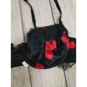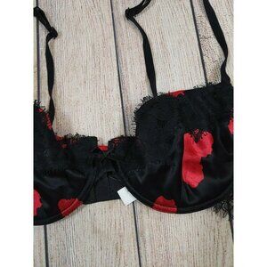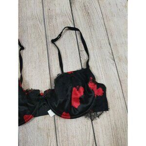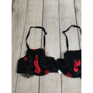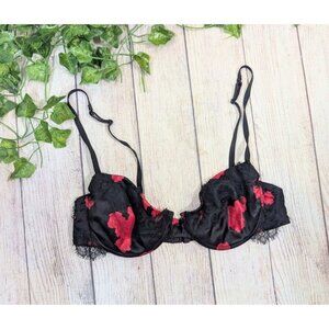 COSABELLA Women's Silk Blend Bra Floral Lace Trim ROSES RED BLACK Size 34b
