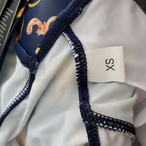 COSKAKA One Piece Ruched Retro Swimming Dress in Blue Flower 4 Size XS