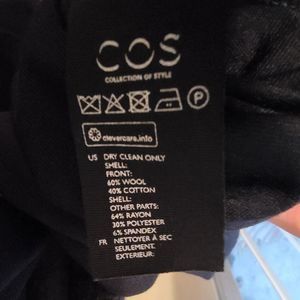 Stylish and sophisticated black wool dress by COS featuring longsleeves and a fuzzy front. Pair it perfectly with your favorite knee-high boots for a cool weather look that's perfectly polished.