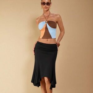 COSMINA Women's Elegant Casual Asymmetrical Ruched Brown Skirt, Spring/Summer