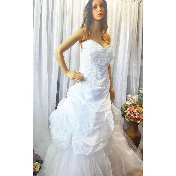 Indulge in pure opulence with the COSMOBELLA Designer Strapless Lace Wedding Dress. This masterpiece of bridal couture, adorned with intricate floral embroidery and delicate tulle, embodies timeless luxury. Elevate your wedding day with this discounted treasure – a gown that's not just a dress, but a statement of unparalleled elegance. Your dreams deserve nothing less.