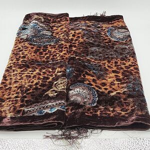 COSMO ENTERPRISE brown floral suede tasseled scarf