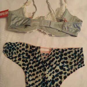 COSMOPOLITAN 34C Puritan Grey Underwire Bra Medium Snake Print Hipster Panty NWT