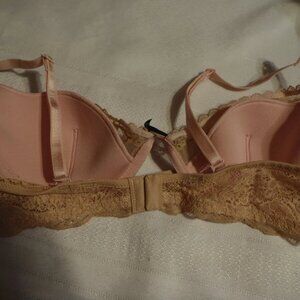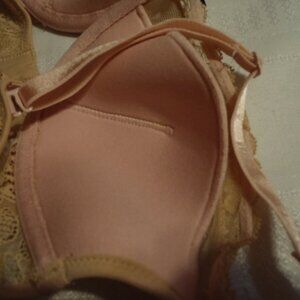 BRA HAS THIN PADDED LINING INSIDE CUPS THAT POLKA DOT LACE IS OVERLAYED