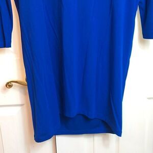 This dress is made from a smooth jersey material with a silk panel across the back. An oversized style and fit, it has dropped shoulders, narrow long sleeves. Hi low hem.