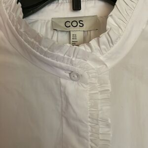 COS Relaxed-Fit Ruffled Poplin Shirt - White size 12