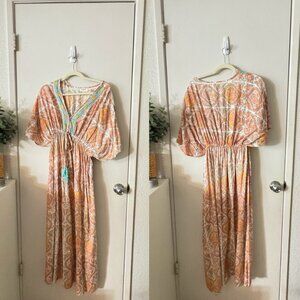 ☀️ COST PLUS WORLD MARKET Bohemian Boho Chic Casual Maxi Dress Tassel Tie S/M