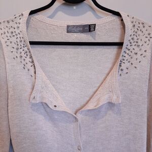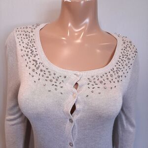 🍁COSTA BLANCA Beaded Button Front Cardigan Sweater Soft Viscose Knit