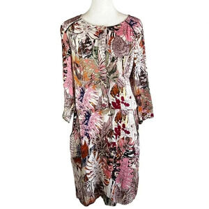 COSTER COPENHAGEN Resortwear Tropical Print 3/4 Sleeve Dress Pockets Size 34
