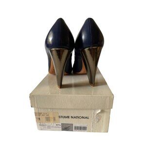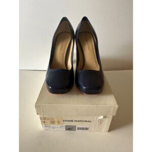 COSTUME NATIONAL Navy Blue Leather Heels Size 37.5 NEW in box